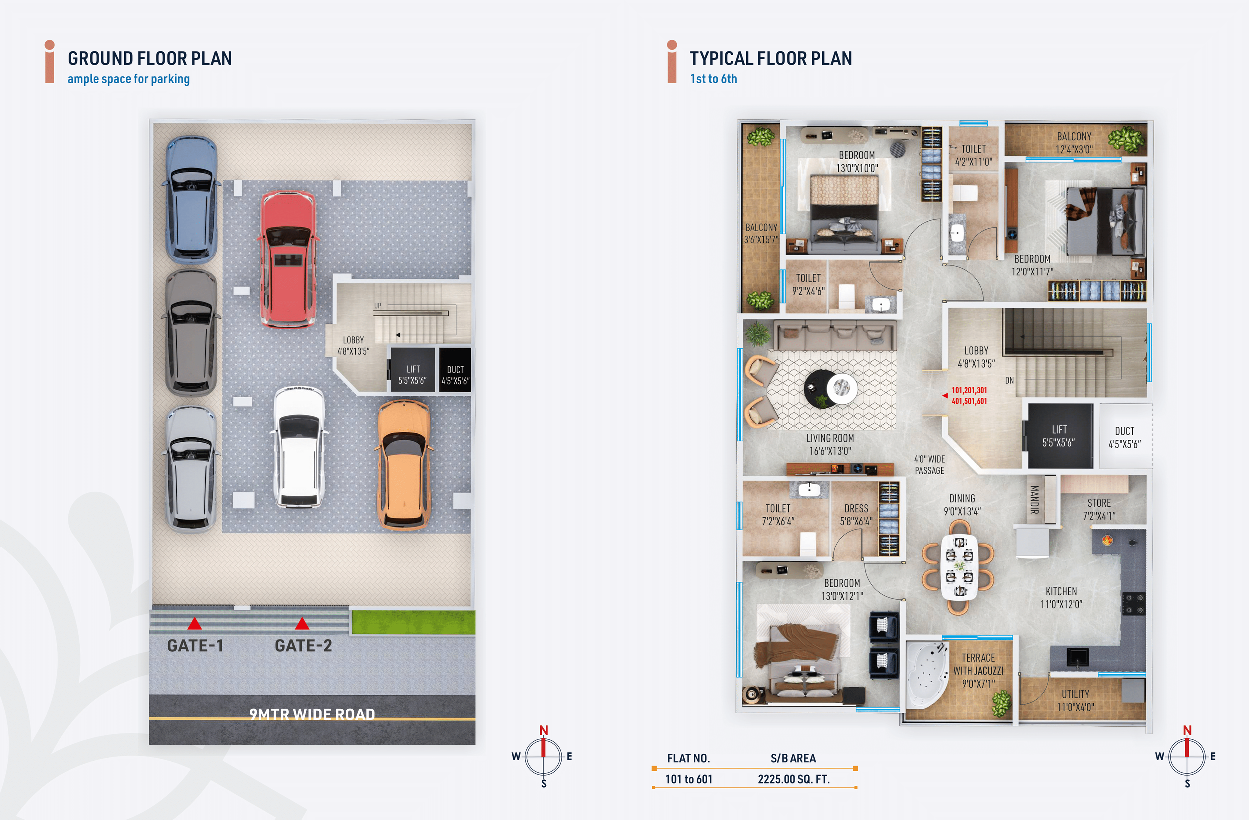 Spacious 3BHK premium apartments (2225 sq. ft.)